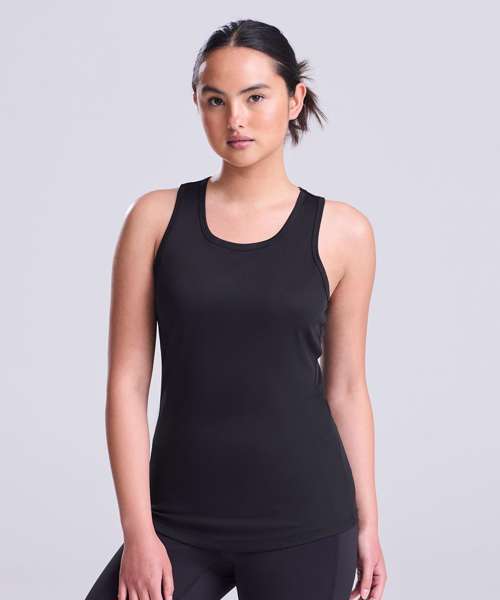Girlie fit. Racer back style. Curved back hem for added comfort. AWDis’ own Neoteric™ texture fabric with inherent wickability and quick drying properties. Self-fabric binding around neckline and armholes. Simple tear off label makes it perfect for rebranding. UPF 30+ UV protection.